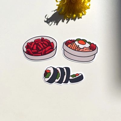 Korean Dishes Sticker | Tteokbokki, Gimbap & Bibimbap | glossy